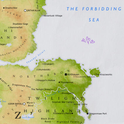 Honeyhearth, known in dwarvish as Baile Meala Modan, is an archipelago of small islands. The main island travelers tend to visit and stay at is the island commonly also known as Honeyhearth, but in dwarvish we refer to it as Baile Meala.Baile Meala Modan is located off the northern coast of Northeron, in the Forbidding Sea.